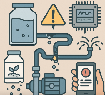 비료 투입기는 스마트팜, 수경재배, 자동 급수 시스템 등에서 작물 생육에 필요한 영양분을 정확하게 혼합하고 공급하는 핵심 장비다. 이 장비가 정상적으로 작동하지 않으면 작물은 필요한 비료 농도를 안정적으로 공급받지 못해 생육 불균형, 잎끝 타는 증상, 수확량 저하 등의 문제가 발생한다. 따라서 비료 투입기 작동 불량은 단순한 장비 문제를 넘어 농업 전체의 생산성 저하로 이어질 수 있는 심각한 이슈다. 비료 투입기 고장은 대부분 미세한 증상으로 시작된다. 예를 들어 평소보다 배액의 EC(전기전도도) 값이 낮게 나타나거나 비료통의 액체가 눈에 띄게 줄지 않는다면 투입기의 흡입이 원활하지 않은 신호다. 또한 펌프 소음이 커지거나 압력이 불규칙하게 변화하는 경우도 내부 밸브 막힘이나 모터 부하가 진행 중임을 의미한다. 작동 불량의 원인은 크게 기계적 결함, 화학적 반응, 전기 제어 오류, 운영 환경 문제로 나눌 수 있다. 기계적 결함은 주로 펌프, 호스, 노즐의 막힘이나 손상에서 비롯되고, 화학적 반응은 비료 성분이 침전하거나 응결되어 내부에 고착물이 생길 때 발생한다. 전기 제어 오류는 센서, 타이머, 제어기(PLC) 간 신호 불일치가 주된 원인이며, 운영 환경 문제는 온도나 습도, 혹은 장비 주변의 이물질 축적에서 비롯된다. 이 중에서도 가장 흔한 원인은 흡입 밸브 또는 인젝터 내부의 침전물이다. 비료 성분 중 인산, 칼슘, 황산염 등이 서로 반응해 침전물이 생기면 흡입 라인이 부분적으로 막히고 투입량이 일정하지 않게 된다. 이로 인해 양액 농도가 흔들리고 장비는 정상 신호를 보내더라도 실제 투입이 이루어지지 않는다. 또한 센서 보정 오류로 인한 데이터 불일치도 자주 발생한다. 예를 들어 EC 센서가 오염된 상태에서 측정하면 실제보다 낮은 값이 표시되어 제어기는 비료를 더 많이 투입하려 하지만 펌프가 한계 유량을 초과해 고장으로 이어진다. 비료 투입기 작동 불량의 초기 징후를 조기에 파악하려면 첫째, 일일 EC·pH 로그 데이터를 기록하고 변동 폭이 커질 경우 즉시 점검해야 한다. 둘째, 비료 용액의 색 변화나 혼탁 여부를 관찰해야 한다. 맑은 상태에서 탁해지거나 미세한 입자가 떠다니는 경우 내부 혼합이 제대로 이루어지지 않고 있다는 신호다. 셋째, 모터 구동음의 변화를 주의 깊게 들어야 한다. 정상일 때는 일정한 리듬의 작동음이 들리지만 막힘이 생기면 소리가 갑자기 약해지거나 “탁탁”하는 공명음이 발생한다.